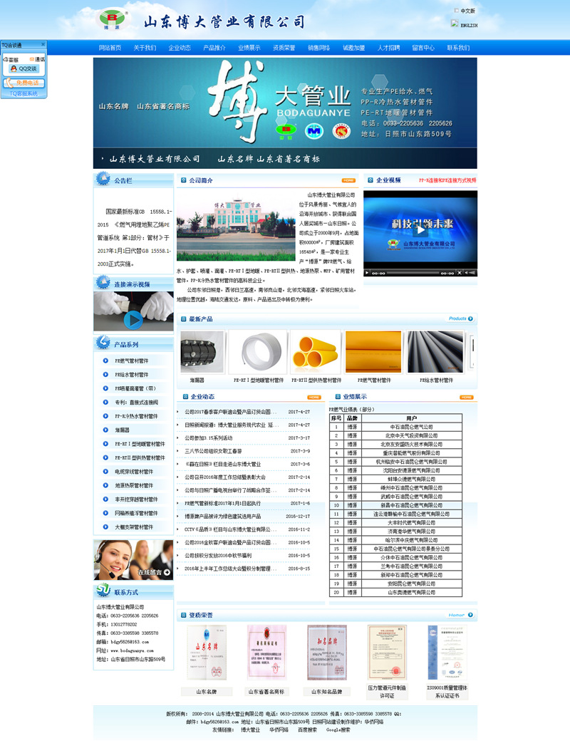 公司是中國城市燃氣協(xié)會、中國塑料加工工業(yè)協(xié)會塑料管道專業(yè)委員會會員單位。公司被評為全國誠信守法民營企業(yè)、全國重質(zhì)量守信譽先進單位、山東省高新技術(shù)企業(yè)、山東省重合同守信用企業(yè)、山東省消費者信得過單位、日照市優(yōu)秀民營科技企業(yè)、日照市AAA信用企業(yè)、日照市行業(yè)領(lǐng)軍品牌、日照市質(zhì)量管理先進企業(yè)。公司生產(chǎn)的“博源”牌系列產(chǎn)品榮獲“山東名牌”、“山東著名商標”“知名品牌”稱號。